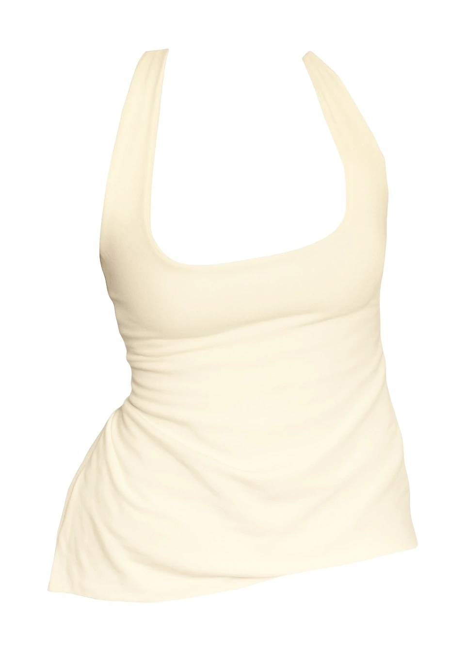 Este elegante top de gasa es ideal para los días cálidos. Confeccionado en un delicado algodón, garantiza comodidad y frescura. Su diseño incluye tiras regulable en la espalda para resaltar la cintura.